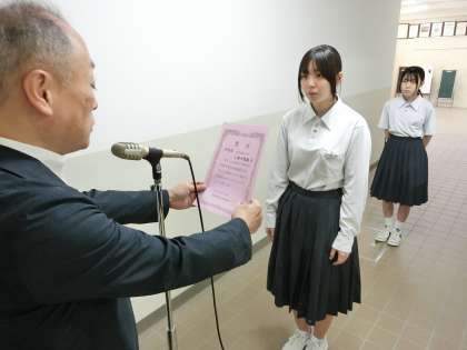 女子団体の部で準優勝の成績をおさめましたので表彰します。