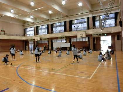女子は体育館にて球技を、