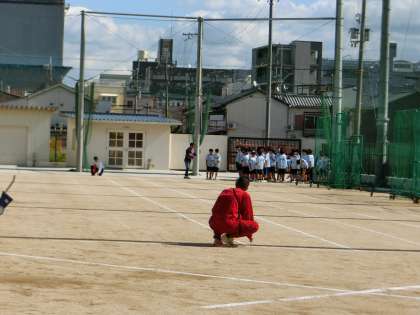 男子は運動場にて