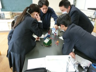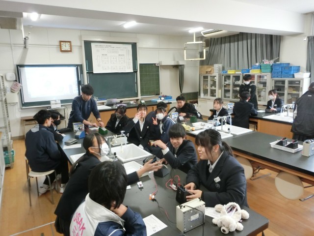 理科室にて電圧と電流についての実験を行っています。