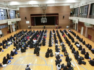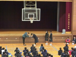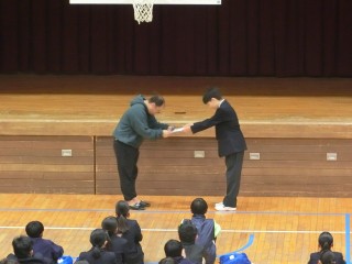 2/6 1年学年集会の様子ー百人一首大会表彰
