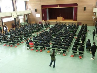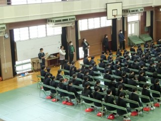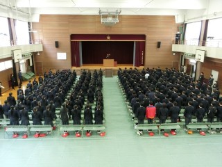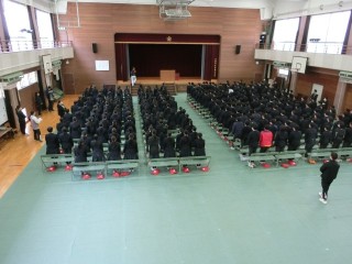 3年生は体育館にて卒業式の練習を行っています。残り僅かな中学校生活時間となりました。