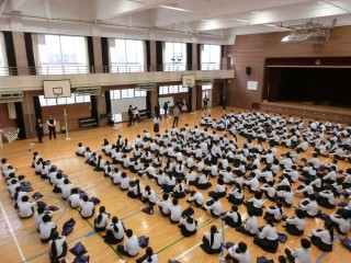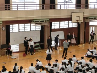 体育館にて二測定を行っています。さすが3年生あっという間に測定も終わらせ残りの時間を学級活動の時間に!