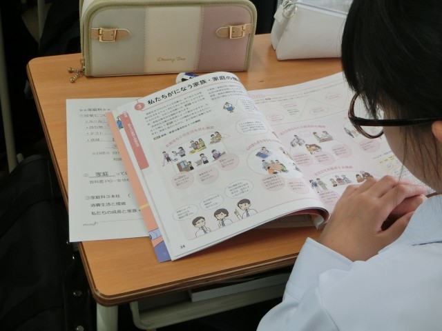 家庭科では教科の3本柱となるこれから習う『衣』・『食』・『住』について学習しています。
