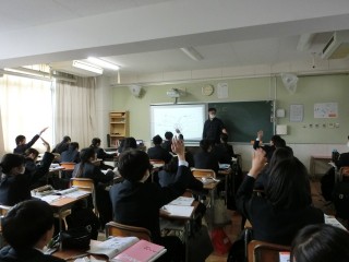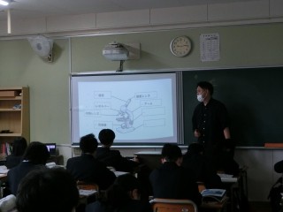 実験器具の顕微鏡の各部名称と使い方について学習しています。