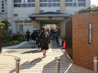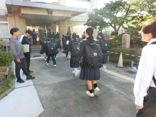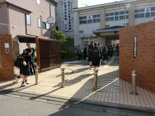 朝の登校風景です。 今日は2年学年集会があります。