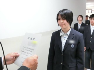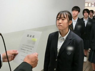 本日、前期生徒会役員の認証状を8名の役員に授与いたしました。