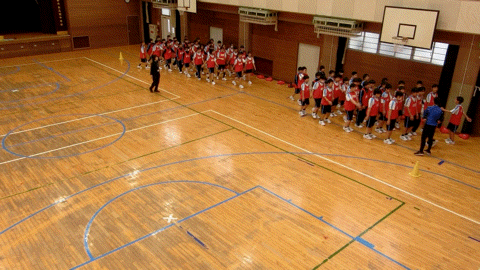 集団行動に取り組んでいます。集合隊形から行進隊形へ。しっかりと足踏みしています。