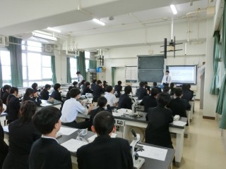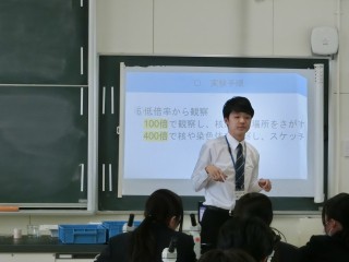顕微鏡を使っての実験です。細胞分裂をするときの細胞の変