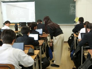 生物の体のつくりとはたらきについてタブレット端末にて小テストを実施しています。