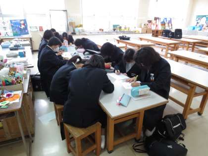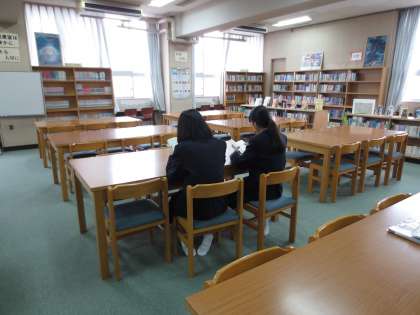 続きまして文化部の活動の様子(一部)をご紹介します。上から順に吹奏楽部と美術部です。吹奏楽部は地域でのコンサート活動で活躍しています。美術部は正門そばの階段の踊り場に、いつも素敵な作品を展示してくれています。さて、3枚目の写真は図書館開放の様子です。本校では、元気アップ地域支援本部のご支援のもと、毎週水・金曜日の放課後5時まで図書館を開放しています。蔵書はすべてバーコードで管理されており、快適な空間で書物を楽しむことができます。加えて学校図書館補助員や生徒図書委員も蔵書の整理や貸出業務にあたります。生徒の皆さん、ぜひ図書館を訪ねよう!