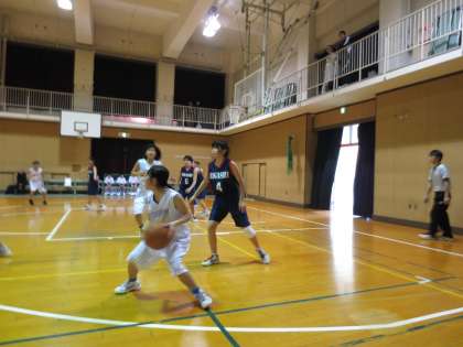 昨日の男子に引き続き、中体連春季総体予選1回戦女子バスケットボールの部(VS東中)が、中央区の東中学校体育館で行われました。東中は自校開催ということも手伝い、保護者をはじめ応援団多数。アウェイの雰囲気にのまれたのか、シュートが決まらず前半から苦しい展開。後半終了間際にスリーポイントシュートを相次いで決めるも、それまでの失点を挽回することができず悔しい敗戦。生徒たちが最後まであきらめず、顔を真っ赤にしながら、コートを一生懸命に駆け巡る姿が印象に残りました。