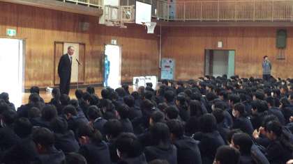 4月25日(月)、本校体育館で『全校集会』を行いました。