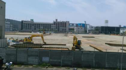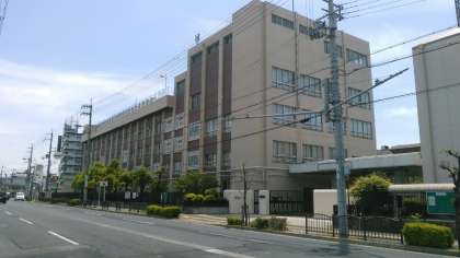 今日は快晴です。神崎川の堤防から改めて校舎を撮影してみました。(上段の写真)十三筋から撮影すると、壁が蘇芳色(すおう色…黒味がかった赤色)であることがよく分かります。(中段の写真)この校舎は昭和51年(1976年)に完成しました。自動車の往来が多いので、撮影のタイミングには苦労しました。なかなか堂々としたたたずまいですね。この校舎にある中会議室に、旧校旗が飾られています(下段の写真)が、これも蘇芳色であることが分かります。