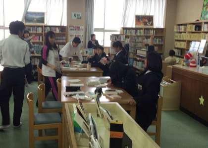 写真上中段は、図書委員会、下段は保健食育委員会の様子です。