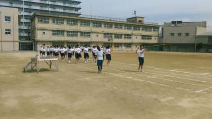 2年生は2回目の学年練習です。開会を飾る入場行進は、本校が力を入れている演技の1つです。掛け声をあわせ、クラスの生徒が気持ちを一つにして堂々と入場行進を行います。本日は保健体育科の先生の指導のもと、各クラスの担任・副担任の先生がクラスの生徒に付きっきりで動作の確認や、運動場への入場する際の位置取りなどを何度も確認しながら練習に励んでいました。なお体育祭は、6月7日(金)(雨天時予備日6月11日(火)・最終予備日6月12日に(水))に開催予定です。