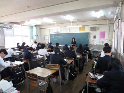明日、3年生は『第1回実力テスト』が行われます。平素の力を発揮して頑張ってください。あるクラスでは、6限英語の授業が行われていました。日本の伝統や風習について、12〜15の単語を用いて英作文をつくり、何名かの生徒が前に出て発表していました。生徒たちは、既習のイディオムを活用しながら、思いおもいの作文づくりに取り組んでいました。高校入試レベルになると25〜30程度の単語を用いて作文をつくる力が問われます。普段の授業で慣れておきたいですね。
