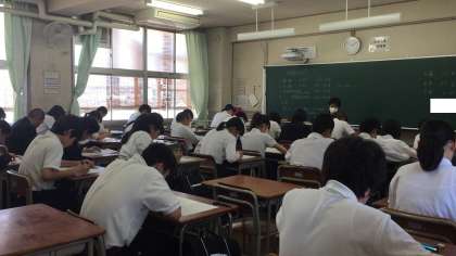 全学年の生徒は、真剣にテスト問題に取り組みました。