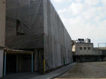 本校校舎2号館の老朽化が進み、一部では外壁の崩落の危険性があるため、事前に外壁の一部を削る工事を今週末に行います。部活動や食堂への移動等については、事故の未然防止に努め、安全を第一に考えて進めていきます。ご協力をよろしくお願いします。
