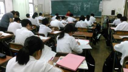 写真は、過日実施された1年生中間テスト「国語」の答案用紙の返却を受け、間違い直しを含め、生徒が復習に取り組んでいる様子です。小学校と比較して、通過率を高めに設定しているため、難しく感じた生徒もいたかもしれません。なぜ間違えたのか、どのように考えれば正解を導き出すことができたのか、しっかり考察を深めてほしいものです。そして疑問に感じたことがあれば、ほおっておかず、必ず教科担当の先生に質問して解決するようにしてください。、