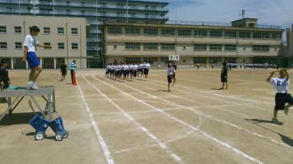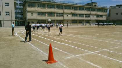 いよいよ今週末が体育祭です。今日の5・6限は、初めての全体練習。学年練習の成果を生かし、掛け声も勇ましく、全クラスによる入場行進練習が行われました。給食時に、体育委員がクラスの前に出て『行進がんばろう!』『しっかり声を出そう!!』と確認するクラスもあり、盛り上がりが感じられます。今日は晴天です。熱中症には十分に気をつけながら頑張ってください。このあと、開会式・閉会式の流れについて全体練習を通じて、確認する予定です。