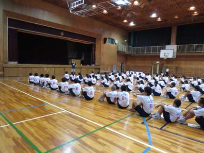 2年生保健体育の授業の様子です。上段は無音ランニング。写真ではわかりにくいですが、掛け声はいっさいかけず、足音だけで周りとリズムを合わせてランニングをしています。先生から「ランニング以外の学校生活でも、周りと協調しながら毎日を過ごしてほしい。」とお話しがありました。その後、新体力テストの一環として「握力」を測定しました。一人左右2回ずつ挑戦し、左右とも良い方の値を合算し、平均値を記録用紙に記入するよう指示がありました。