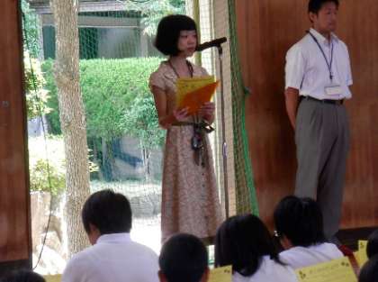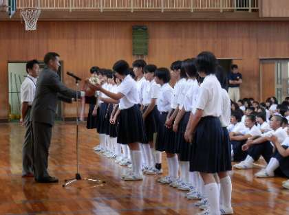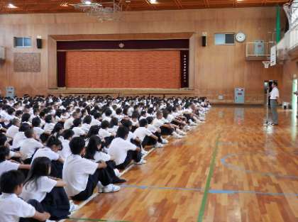 体育館で行った終業式では、この一学期を振り返えるとともに、夏休みの生活に向けての話をしました。