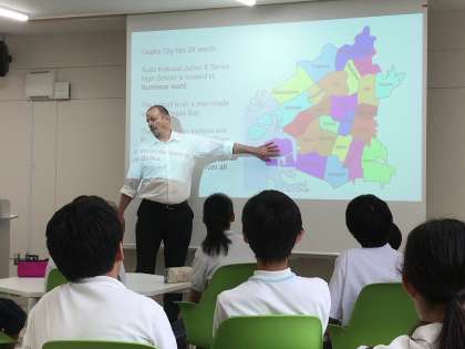 子ども市会参加生徒は、7月19日(金)午後、市政に関連する施設の実地調査学習会として、大阪市立水都国際中学校・高等学校を訪問し、国際教育とICT教育の最新の取り組みを見学しました。