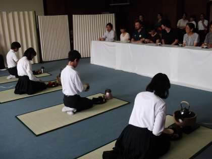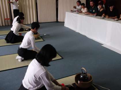 技術指導者の先生に教えていただき、お点前を披露しました。