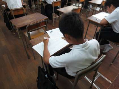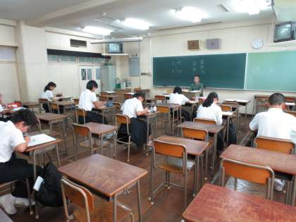 本日1限、『美中・ザ・チャレンジ〜自分の漢字力を知ろう〜』が開講されました。漢字検定の7級相当から2級相当の問題のうち、自分が選んだ級にチャレンジします。中学校卒業程度は3級が相当とされています。皆真剣に問題に取り組んでいました。なお淀川区では『漢字名人育成計画』事業が施策として取り入れられており、いずれかの学年を対象に漢字検定受験料が補助されます。本校では毎年2学期に、2年生が本事業を活用して漢字検定に臨んでいます。