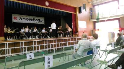 9月15日(日)三津屋小学校講堂で行われた『みつや敬老の集い』第二部に本校吹奏楽部が出演し、演奏を披露しました。