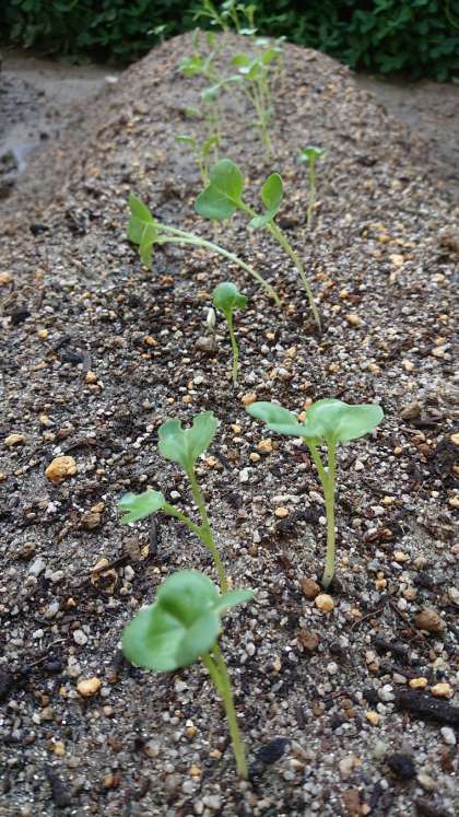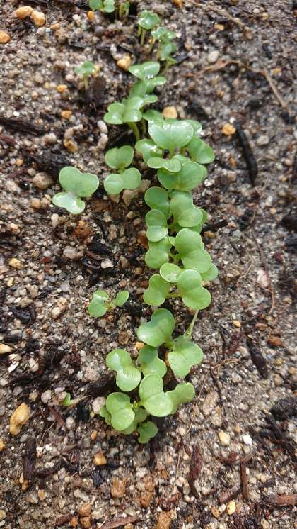 菜園で育てていただいている、田辺大根と天王寺かぶらの芽が出ました。すくすくと育っているようです。