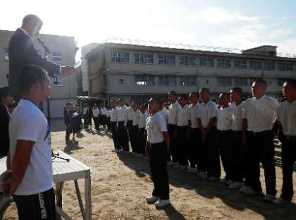 昨日、グランドコンディションが悪くてできなかった「全校集会」を本日行いました。