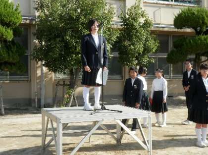 今日は、野球部への表彰伝達や生徒会の各専門委員会からの報告、選挙管理委員長より後期生徒会選挙の公示が行われました。選挙は、来週の月曜日に行われる予定です。