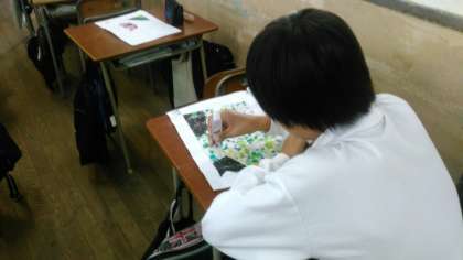 来週18日(金)に開催する文化祭に向けて、今日から2週間を文化祭Weekと位置付け、7限目に練習や準備に取り組みます。写真左から1年生はちぎり絵、2年生は演劇の衣装づくり、3年生は全体合唱パート練習の様子です。