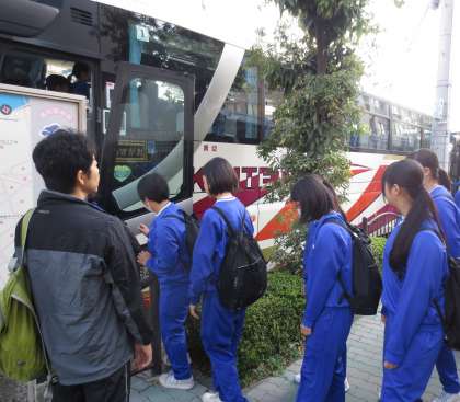 本日は3年生校外学習の日です。現地までは貸切バスで移動します。