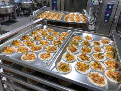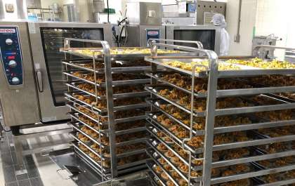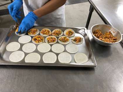 11月6日(水)、今日の給食の献立『変わりピザ』の調理の様子です。