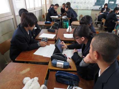 2年生は午後から、来週22日(金)に実施する校外学習の準備に取り組みました。現地(京都)では班別行動をとります。そこでタブレット端末を用いて、当日の行程を探索していました。