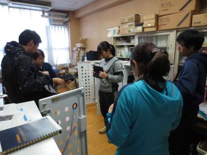 本校は、大阪市教育センターの協力のもと、月2回の割でICT支援員の訪問を受けています。写真は、1年生所属教員がタブレット端末の使用方法について研修を受けている様子です。1年生は、3学期に校外学習(大阪市内フィールドワーク)を予定しており、その事前学習でタブレット端末を使用する予定です。