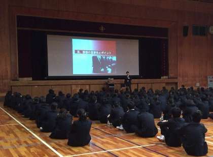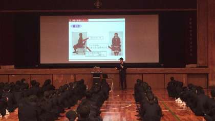 11月22日(金)6限、本校体育館で、3年生は『制服着こなし講座』を受講しました。カンコー学生服より講師の先生をお招きし、制服の着こなし方や面接の重要性やポイントなどを、わかりやすく教えていただきました。