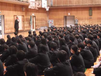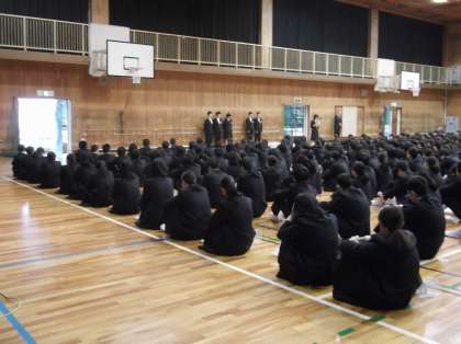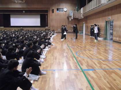 11月25日(月)朝、本校体育館で『全校集会』を行いました。