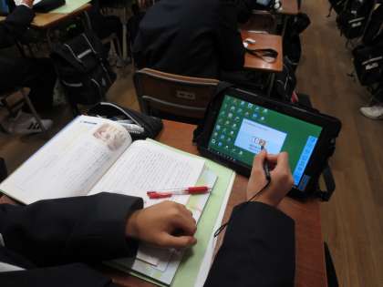 本校では学期に1回ずつ、道徳校内授業研究会を実施しています。今回は3年生が、資料『招集通知〜あなたが裁判員になるとき〜』を用いて、社会参画や公共の精神について考える授業です。担当教員との対話をベースに班活動やタブレット端末等も活用しながら、各クラスとも創意工夫のある授業を展開しました。終了後に授業者と参観者がグループをつくり、授業について振り返りました。