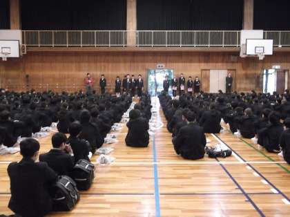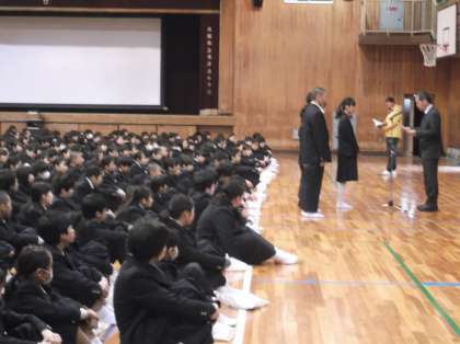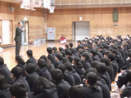 12月9日(月)朝、本校体育館で『全校集会』を行いました。