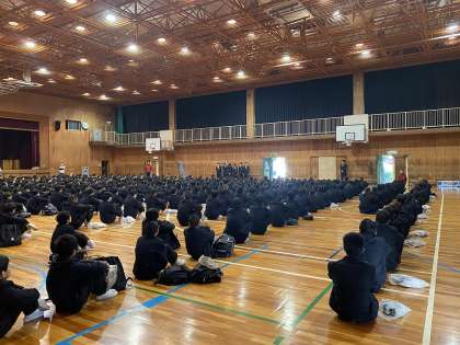 12月16日(月)朝、本校体育館で『全校集会』を行いました。