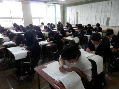 土曜授業の3限目。保護者向け進路説明会と同時進行で、希望者による漢字検定試験を実施しました。