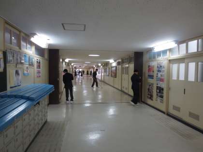 本日午後から、冬休みの諸注意のための学年集会ならびに大清掃を行いました。職員室前廊下や教室棟の窓など、普段清掃が行き届かない箇所も、丁寧に清掃しました。
