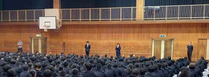 まず、校長先生より新学期に向けて、『志』を高くもつことの大切さについてのお話がありました。続いて、新しい先生の紹介があり、最後に、生活指導担当の先生より、お話があり、始業式を終えました。