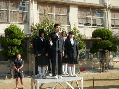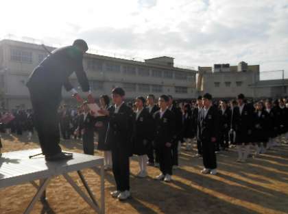 後期生徒会役員への認証状授与に続いて、各学級委員の認証として各学年の学級代表にそれぞれ認証状を授与しました。その後、前期生徒会役員からそれぞれ任期を終えたあいさつがお礼の言葉も含めて述べられました。後期生徒会への希望をつないで・・・