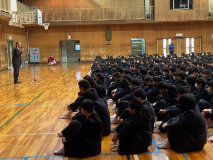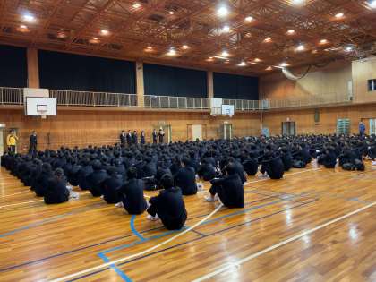 1月14日(火)朝、本校体育館で『全校集会』が行われました。