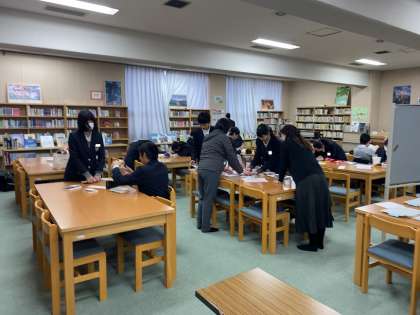写真は、図書委員会の活動の様子で、蔵書、学級文庫の整理などをしました。